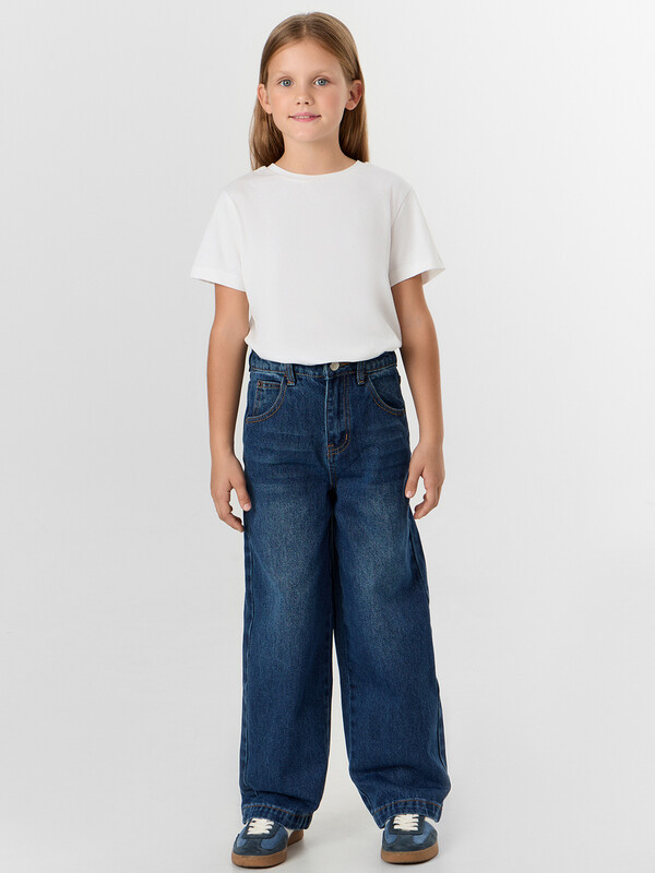 БРЮКИ ДЖИНСОВЫЕ ДЛЯ ДЕВОЧЕК 2025-2DTG301-2 (134-140 (140-68), Синий)(Mark Formelle)
