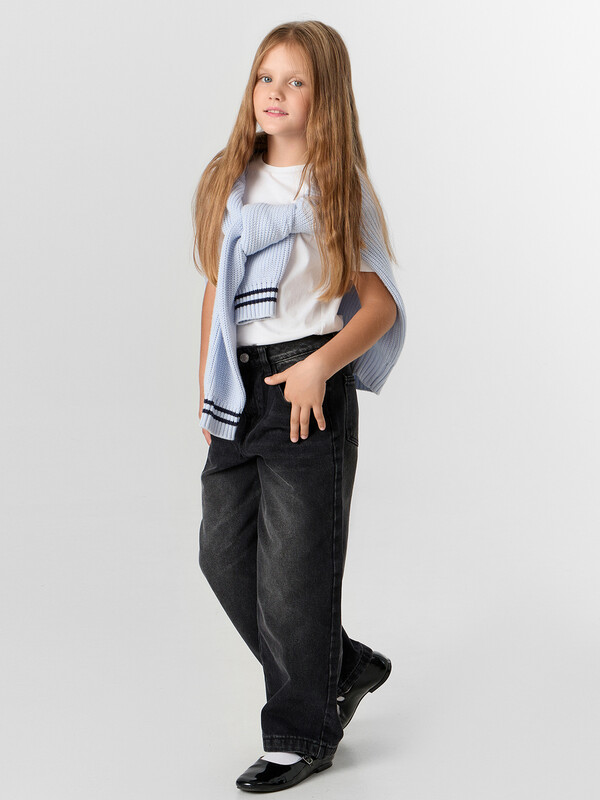 БРЮКИ ДЖИНСОВЫЕ ДЛЯ ДЕВОЧЕК 2025-2DTG301-6 (116-122 (122-60), Серый)(Mark Formelle)