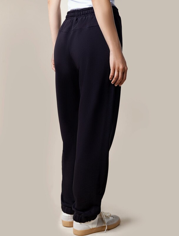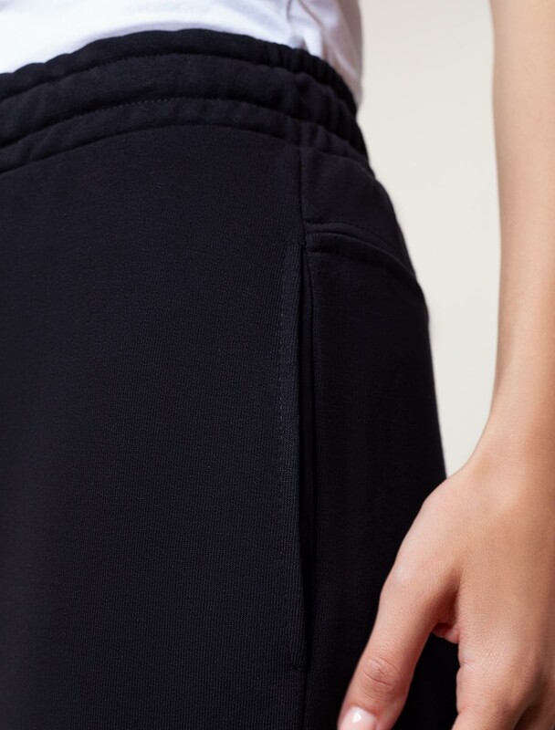 Брюки выполнены из премиального футера трехнитки без начеса. Модель дополнена эластичным поясом на резинке и хлопковым шнурком с золотистой фурнитурой. По бокам два кармана. Наличие эластана в составе гарантирует формоустойчивость и износостойкость изделия. Изделие сочетается в костюме с худи D49.051