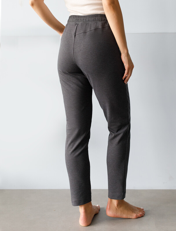 Брюки выполнены из тонкого хлопкового футера. Эластичный материал хорошо пропускает воздух, позволяя телу дышать, и легко тянется, не ограничивая движения. Пояс на резинке дополнен внутренним шнуром, для комфортной регулировки изделия. Брюки сочетаются в костюме с джемпером D49.054 и D49.055