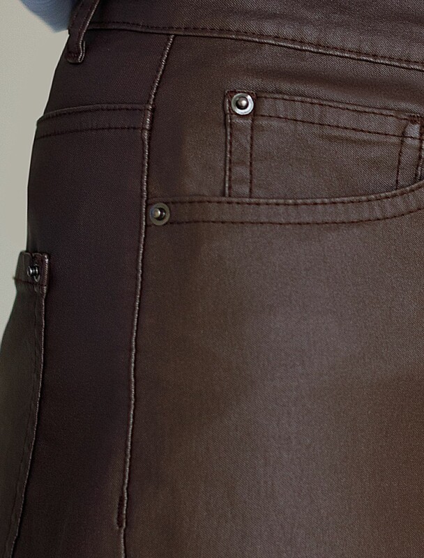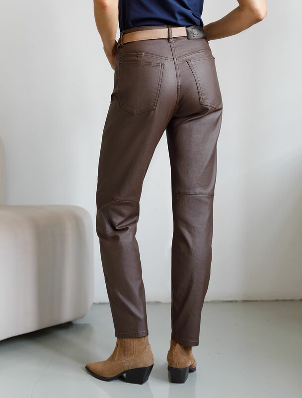 Брюки mom fit из эластичного хлопка с покрытием под кожу