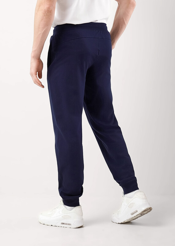 Брюки на манжете из трикотажного полотна - футер с эластичным поясом из кашкорсе со шнуром комфортно облегает фигуру, а посадка не сковывает движения. Модель дополняют боковые карманы.