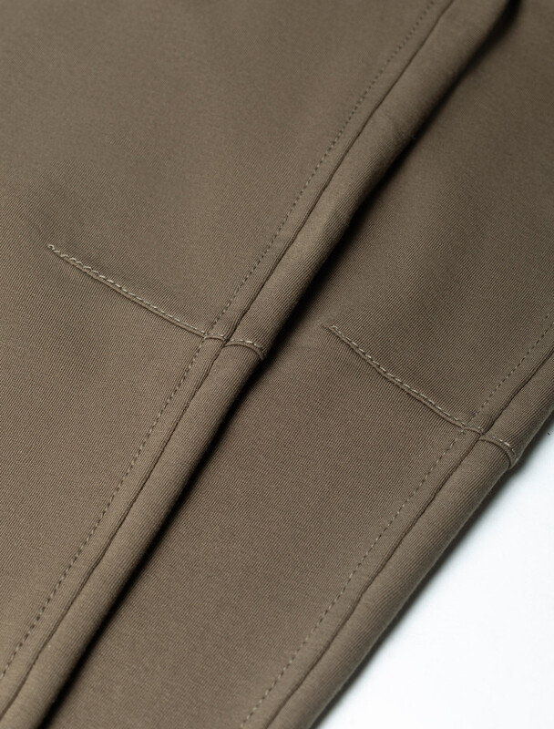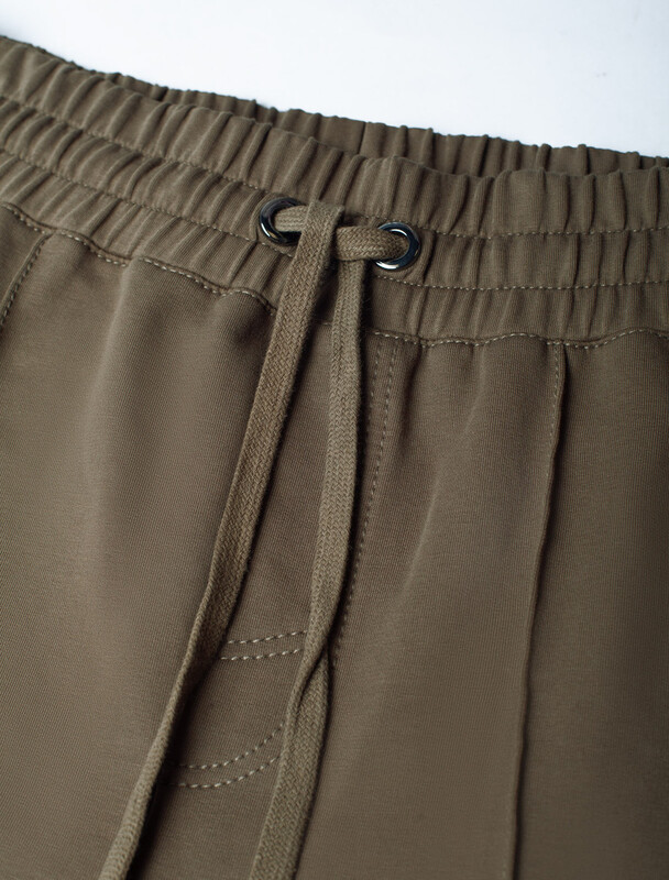 Свободные брюки практичного цвета хаки с эластичным поясом на резинке и шнуром изготовлены из премиального футера двухнитки. Натуральная ткань, в составе которой хлопок и эластан, отличается дышащими свойствами и мягкостью на ощупь, обеспечивает комфорт и удобство в повседневной носке. Трикотажные брюки сохраняют свой первоначальный вид после многочисленных стирок, что делает их практичными для активного использования. Повседневные брюки дополнены карманами по бокам и одим задним карманом на молнии, что позволяет удобно хранить необходимые мелочи. Внизу расположены затяжки на стопорах, тем самым можно регулировать посадку под индивидуальные предпочтения каждого мужчины.