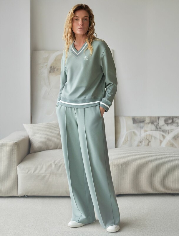 Брюки темно-синего цвета с удобным эластичным поясом на резинке и карманами по бокам выполнены из премиального футера-двухнитки плотностью 240 Г/м2. Наличие эластана в составе гарантирует комфорт и долговечность изделия, материал хорошо пропускает воздух, позволяя телу дышать. Свободный прямой крой обеспечивает свободу движений и максимальное удобство в любых ситуациях, поэтому они подойдут и на большие размеры, а так же на высокий или низкий рост. Фигура подчеркивается, а силуэт визуально вытягивается за счет кроя палаццо и застроченных декоративных стрелок. В повседневных трикотажных брюках вы будете чувствовать себя комфортно и уверенно, наслаждаясь каждым моментом дня. Спортивные брюки подходят для демисезонного использования, в летний период, для занятий спортом в помещении и на улице, а также как часть стиля casual.