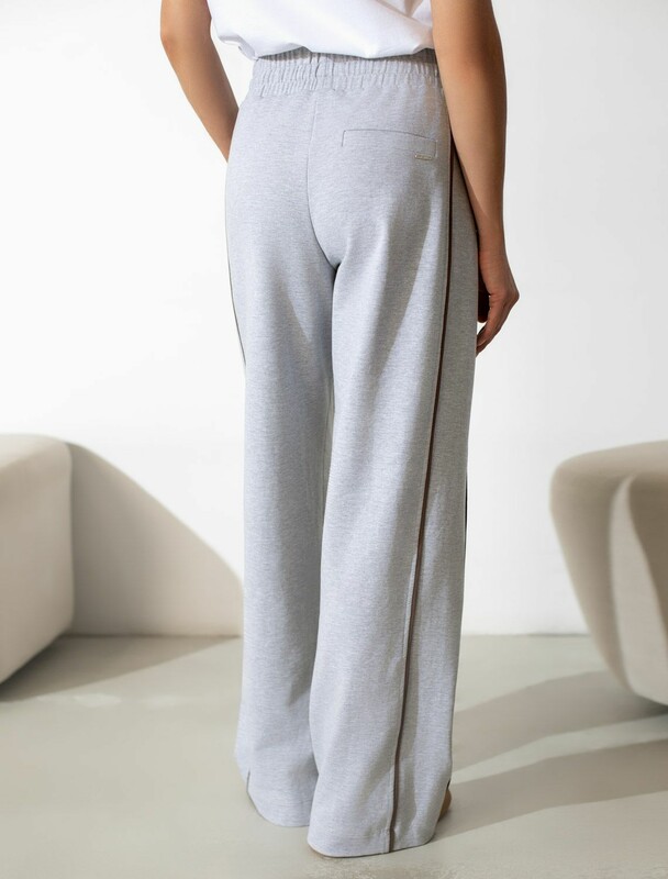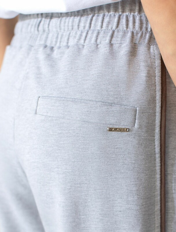 Брюки с лампасами и разрезами из эластичного футера двухнитки без начеса (42 (170), св.серый меланж)(Vilatte)