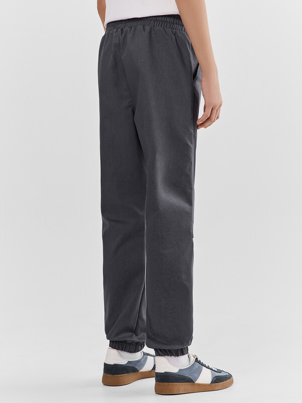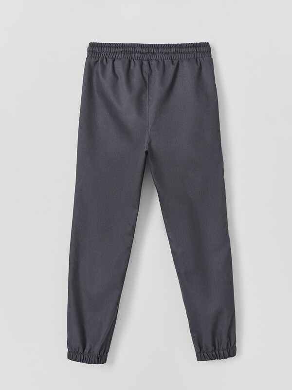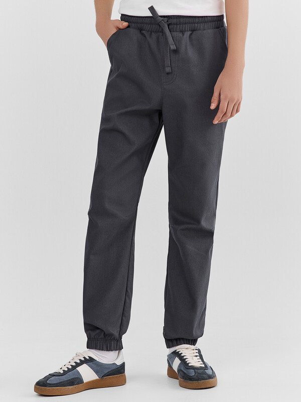 Спортивные брюки для мальчиков. В составе текстильного полотна преобладает хлопок, полиэстер и эластан добавлены для прочности. Брюки длиной выше косточки, с классической линией талии. Силуэт прямой, слегка заужен к низу. Пояс с регулировочным шнурком. Есть карманы-хулиганы. Спереди – имитация гульфика. Штанины завершаются эластичной тесьмой. Стильные брючки!