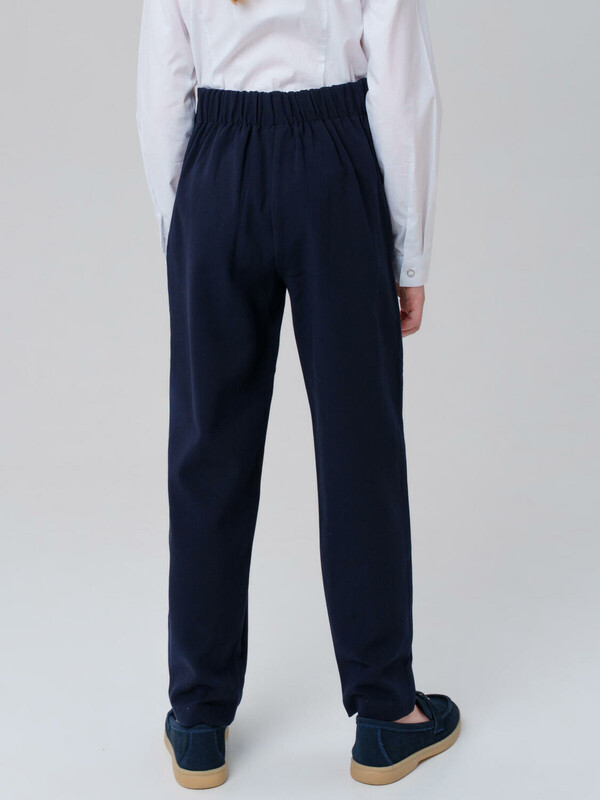 Классические темно-синие школьные текстильные брюки нон айрон для девочки.