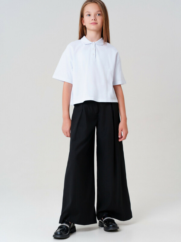Идеальные брюки для школы, сочетающие комфорт и аккуратный внешний вид. Модель с посадкой Wide leg — это широкие брюки с расслабленной посадкой, максимальной длиной и акцентом на талии. Обеспечивает свободу движений, а застежка на молнию и пуговицу позволяет легко регулировать посадку по фигуре.