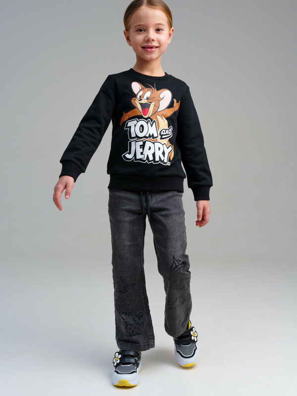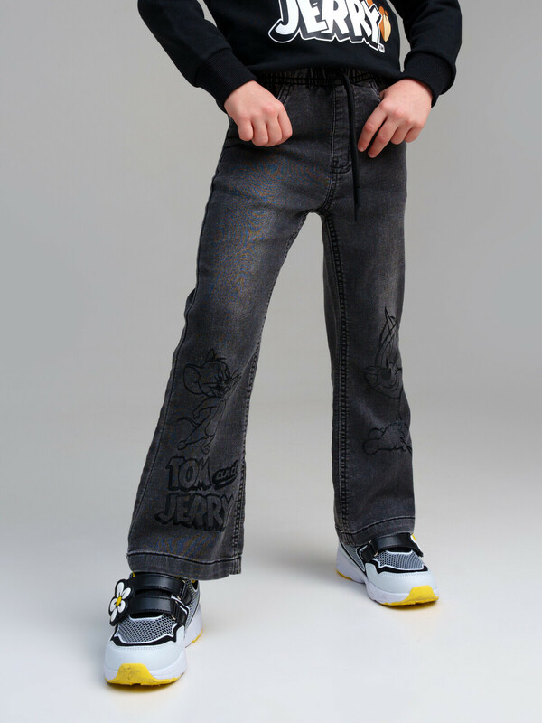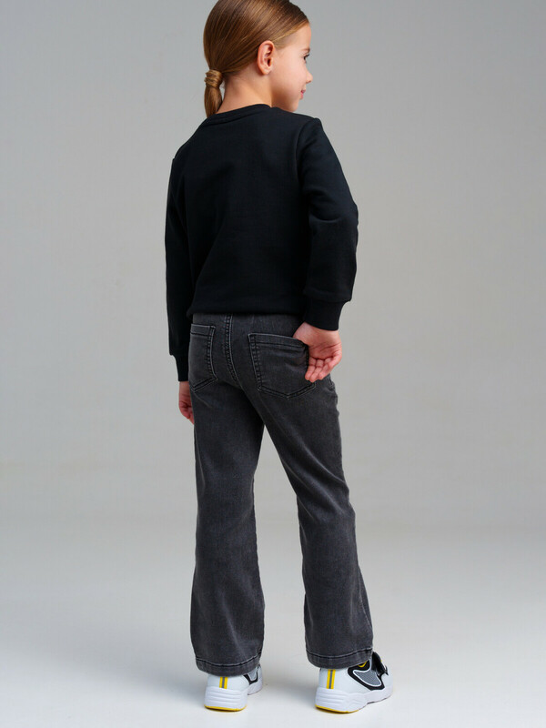 Джинсы детские для девочки. Джинсы из сверхудобного эластичного материала Loop Denim. Loop denim имеет внешний вид классической джинсы, а по тактильным ощущениям мягкий и комфортный, как трикотаж. FLARE FIT - джинсы клеш. Джинсы на резинке со шнурком. 4 кармана.