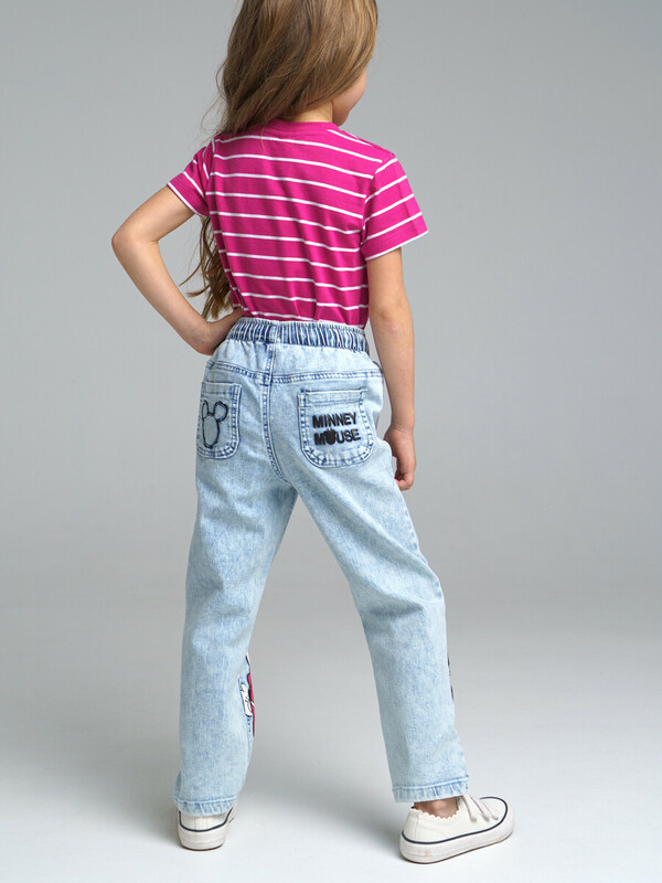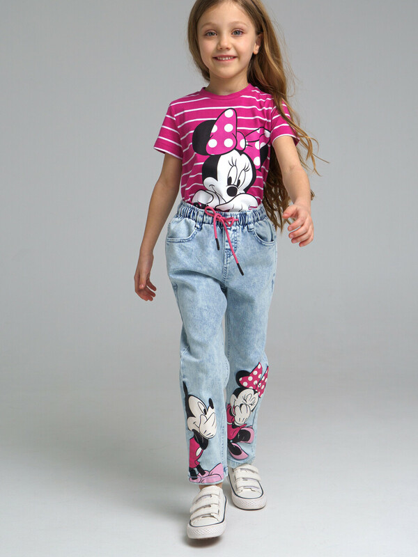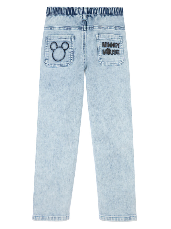 Джинсы с персонажем Disney из сверхудобного эластичного материала Loop Denim. Loop denim имеет внешний вид классической джинсы, а по тактильным ощущениям мягкий и комфортный, как трикотаж. Comfort fit – свободный крой брючин. Эластичный пояс со шнурком. Функциональные карманы.