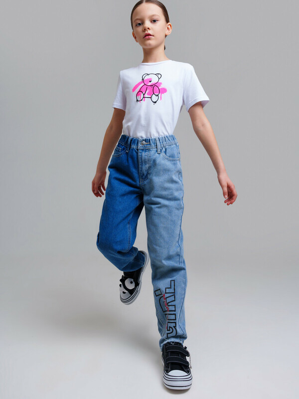 Джинсы для девочки. Пояс с внутренней утяжкой. Mom fit - модная свободная посадка на бедрах с зауженным силуэтом от колена. Высокая посадка. Модель выполнена из качественного и плотного текстиля.