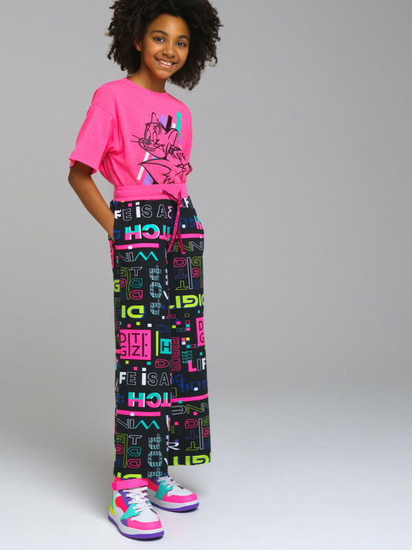 Брюки из качественного эластичного и приятного на ощупь трикотажа джерси. Модель свободного кроя с широкими штанинами. Карманы в боковых швах. Эластичный пояс со шнурком. Благодаря наличию эластана в составе ткани изделие проще в уходе и держит форму.