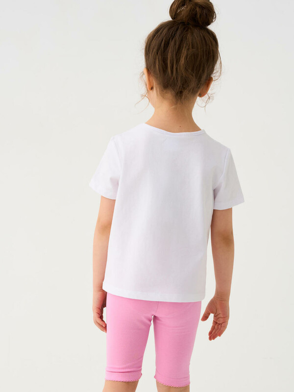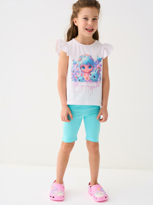 Набор детских легинсов для девочки. Комплект состоит из двух пар укороченных легинсов в нежных пастельных цветах. Обе модели имеют высокую посадку и эластичный пояс, который хорошо фиксирует изделие на талии. Материал - мягкий, хлопковый трикотаж.