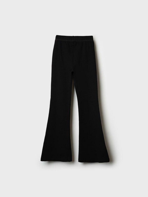 Брюки клеш для девочки подростка. Выполнены из хлопкового трикотажа в рубчик. Высокая посадка на талии. Пояс на резинке.