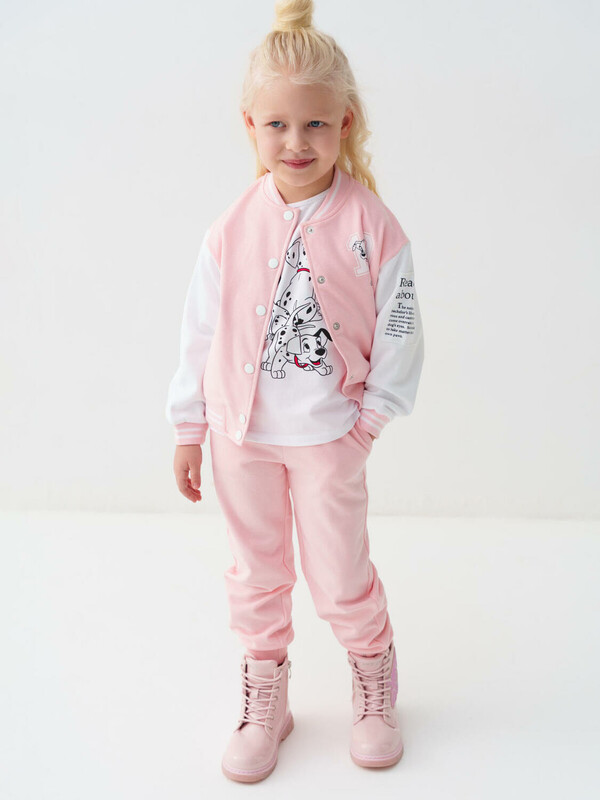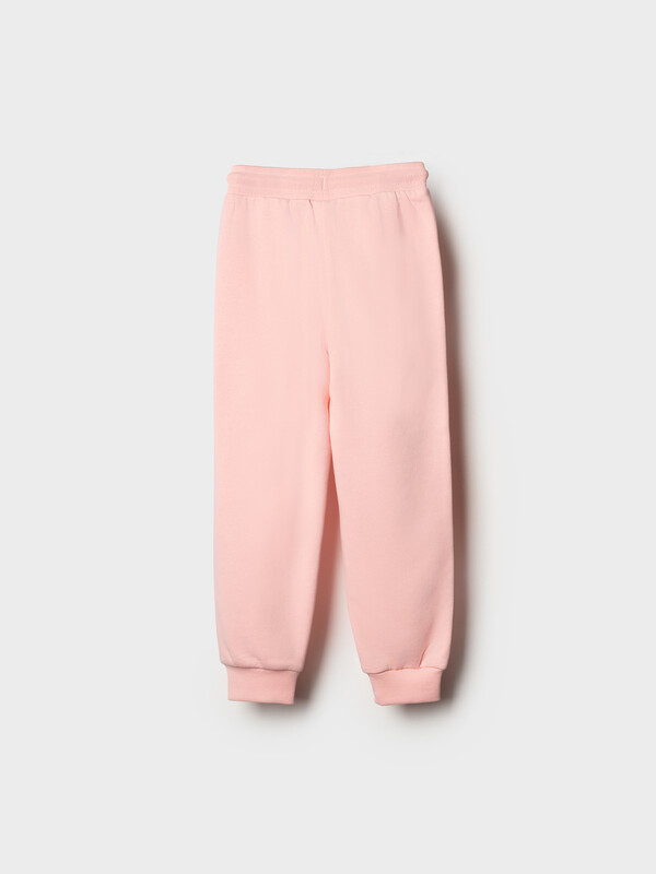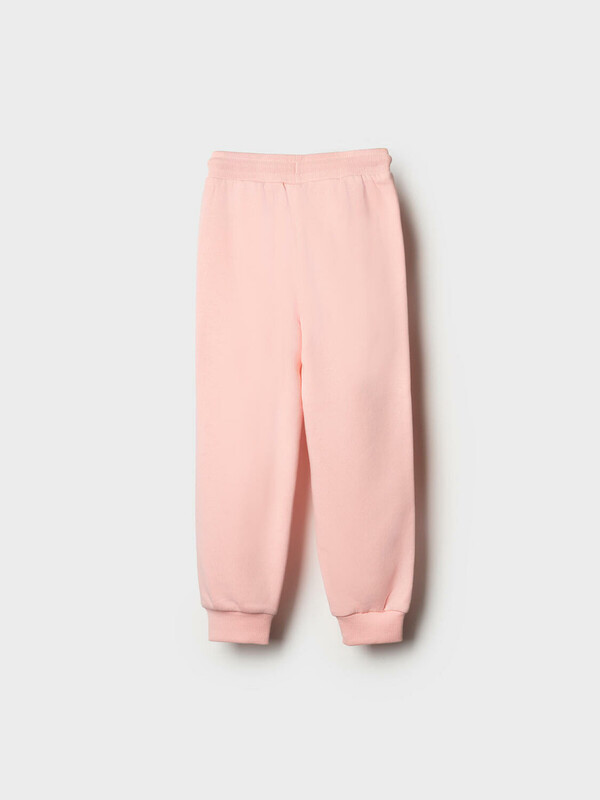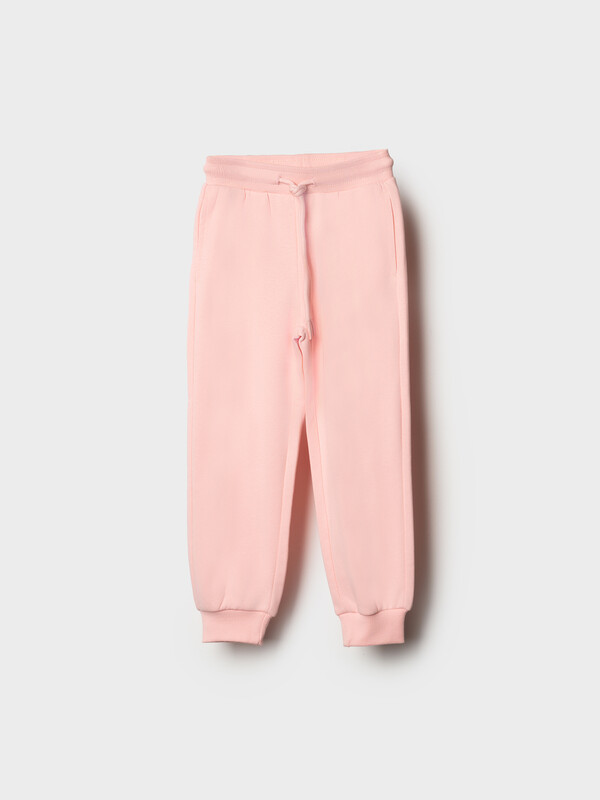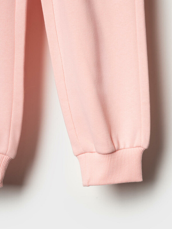 Детские спортивные брюки для девочки. Выполнены из хлопкового трикотажа футер без начеса. Модель свободного кроя со средней посадкой на талии. Пояс выполнен на резинке, дополнительно регулируется шнурком. По бокам — удобные карманы. В нижней части брючин предусмотрены эластичные трикотажные манжеты для лучшей посадки.