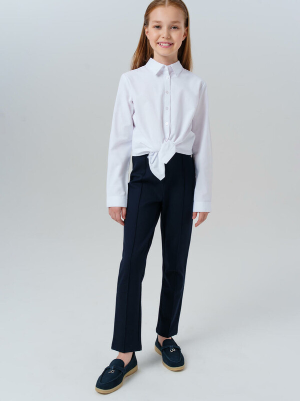 Школьные трикотажные темно-синие брюки для девочки подростка от PlayToday — стильный и практичный выбор для школы, который сочетает комфорт, элегантный силуэт и удобство на каждый день. Зауженный крой, мягкая ткань и идеальная посадка делают эти классические подростковые штаны отличной базой школьного гардероба.