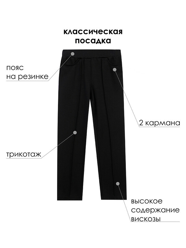 Материал неприхотлив в уходе: классические брюки для девочек сохраняют свою форму даже после многочисленных стирок при температуре до 30°C.