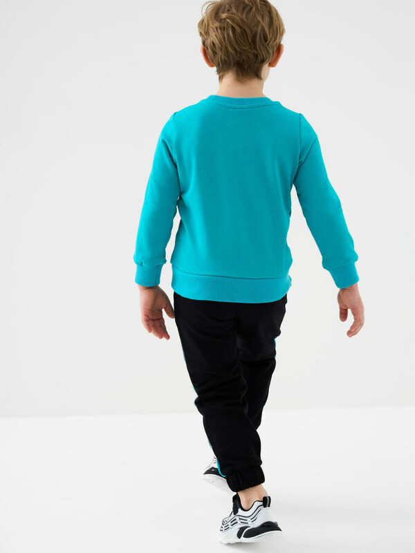 Брюки-джоггеры детские для мальчика. Выполнены из хлопкового трикотажа футер без начеса. Модель прямого кроя со средней посадкой на талии. Пояс выполнен на резинке, дополнительно регулируется шнурком. По бокам — удобные карманы. В нижней части брючин предусмотрены эластичные трикотажные манжеты для лучшей фиксации. Брюки украшены принтами и нашивками в гоночной тематике.
