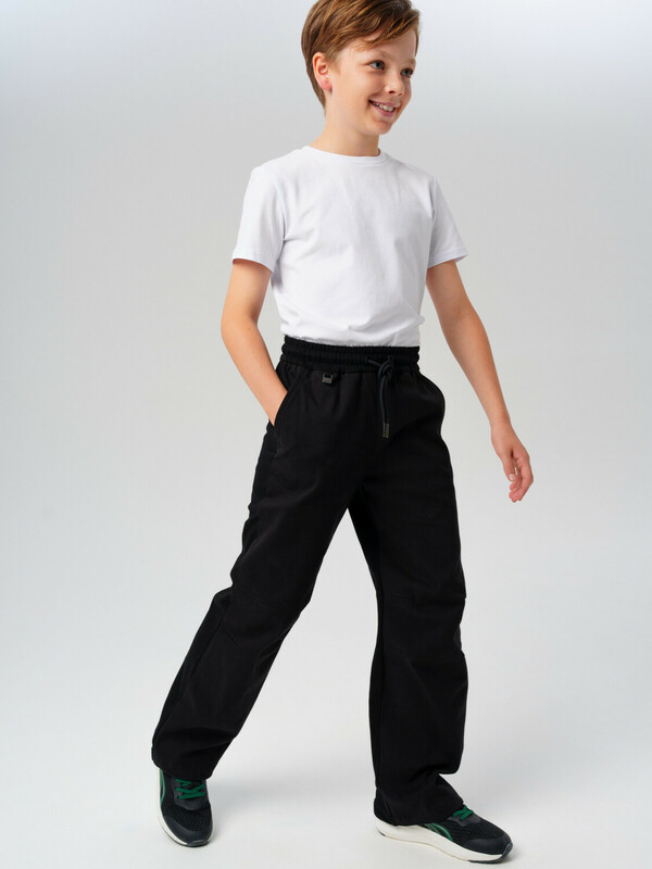 Идеальные брюки для школы, сочетающие комфорт и аккуратный внешний вид. Модель с посадкой оверсайз обеспечивает удобную свободу движений, а резинка со шнурком позволяет легко регулировать посадку по фигуре.