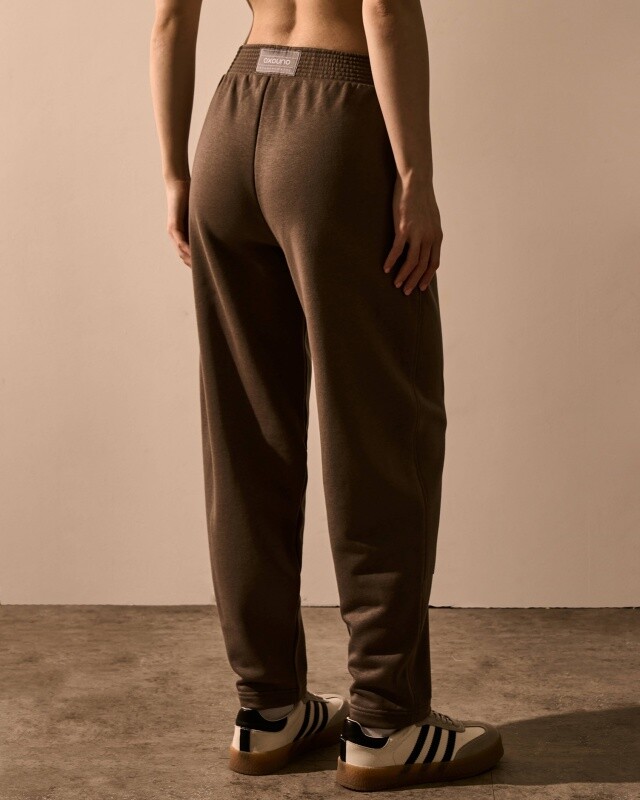 Брюки-бананы. Передние половинки брюк со швом. Накладные карманы по передним боковым половинкам брюк,между швами. Пояс из основной ткани, отстрочен.