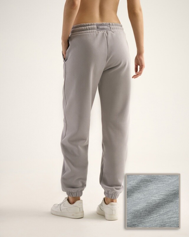 Джоггеры свободного кроя с боковыми карманами, собранные внизу. Широкий эластичный пояс со шнуром.