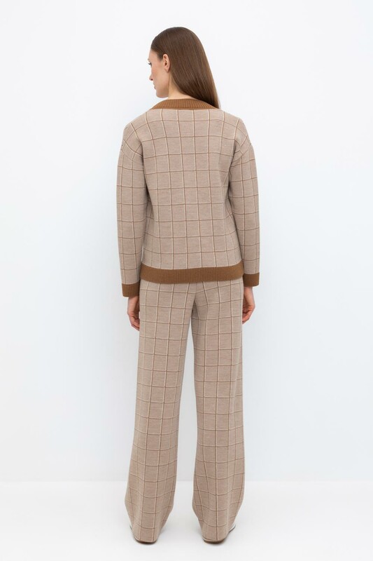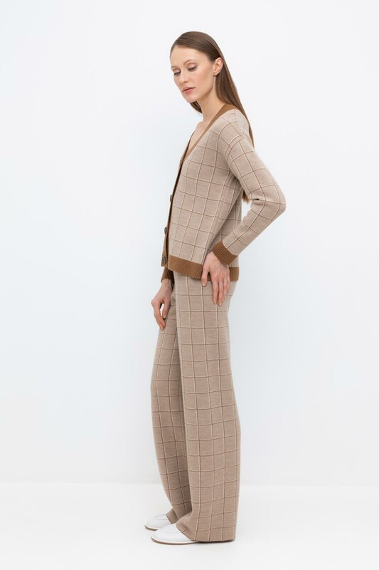 Удобные вязаные брюки прямого силуэта. Связаны жаккардом из мягкой полушерстяной пряжи. В составе 50% шерсти и 50% акрила. Шерсть мериноса в составе сохраняет тепло, а благодаря волокнам акрила изделие мягкое и дольше сохраняет форму. Плотная фактура вязания согревает и сохраняет форму во время носки.