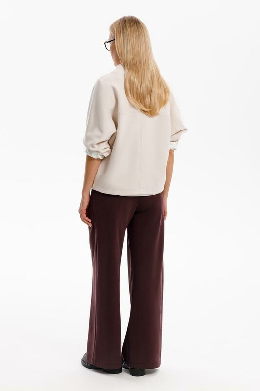 Брюки с защипами на талии, изготовленные из премиального трикотажа DOUBLE FACE, дарят ощущение комфорта и легкости. Складки спереди придают изделию свободный силуэт.