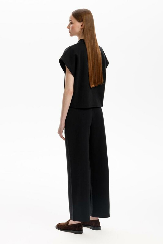 Брюки прямого кроя из премиального трикотажного полотна DOUBLE FACE с добавлением спандекса. Прямой крой подчеркивает силуэт, создавая классический образ. Боковые карманы и застежка спереди придают изделию функциональность.