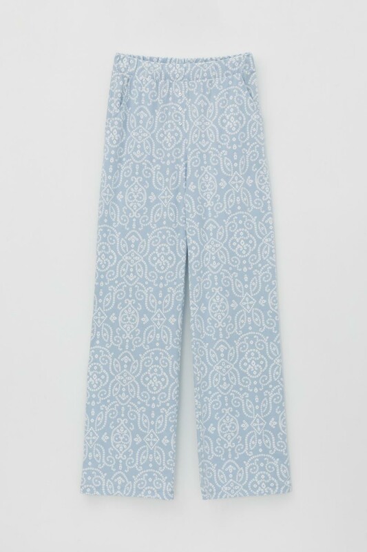 Лёгкие комфортные брюки из набивного трикотажа из 100% натурального хлопка. Модель с поясом на резинке, декоративным гульфиком с пуговицами и боковыми карманами. Низ изделия обработан плоскими швами. Гладкий материал приятен к телу, не теряет форму и позволяет коже дышать.