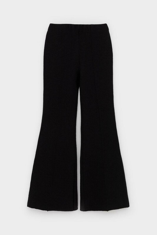 Удобные вязаные брюки со стрелкой из 100% шерсти. Шерсть в составе хорошо сохраняет тепло. Пояс на резинке.