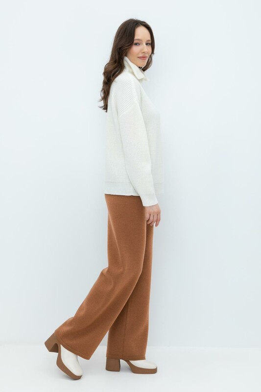 Удобные вязаные брюки прямого силуэта. Выполнены из мягкой полушерстяной пряжи. Шерсть в составе сохраняет тепло, а благодаря волокнам акрила изделие мягкое и дольше сохраняет форму.