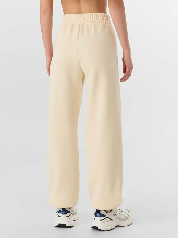 Брюки джогеры из трикотажного полотна. Пояс отрезной, с элатичной тесьмой внутри (60мм внутр. 60RV). По поясу проложены отделочные строчки. Боковые швы смещены в сторону переда. В боковых швах обработаны карманы. По низу джогеров подгибка с эластичной тесьмой внутри.