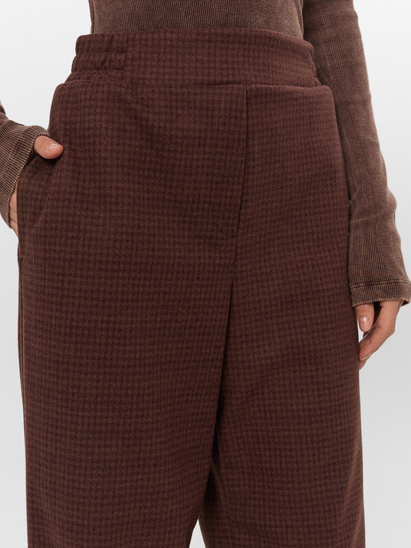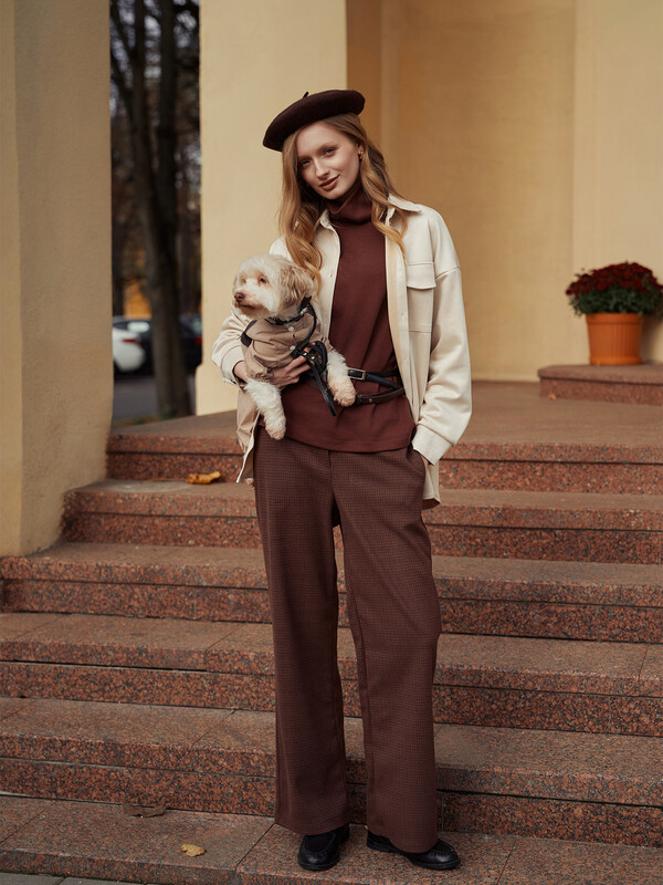 Универсальный коричневый оттенок и актуальный крой позволяют сочетать брюки с разными верхами — от объемных свитеров до строгих блуз. Идеальный выбор для офиса, учебы или прогулок, где важны комфорт и стиль.