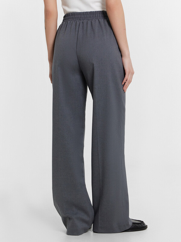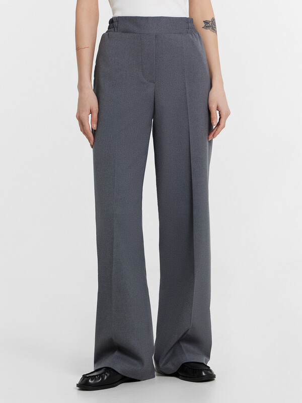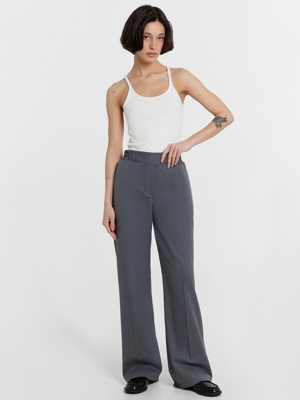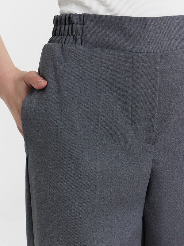 Эти женские прямые свободные брюки — отличный выбор для стильных и комфортных образов. Высокая посадка визуально удлиняет силуэт, создавая элегантные пропорции, а частично эластичный пояс обеспечивает удобную посадку и адаптацию к фигуре. Задняя часть пояса с эластичной тесьмой внутри добавляет комфорт и мягкость прилегания, делая брюки идеальными для длительного ношения. Боковые карманы в швах добавляют функциональности. Спереди декоративная строчка имитирует гульфик, придавая брюкам классический, завершенный вид. Нижний срез обработан швом вподгибку, что добавляет аккуратности и долговечности. Изделие выполнено из смесового материала с добавлением вискозы, что делает ткань легкой, приятной к телу и удобной в носке. Эти брюки идеально сочетаются с различными элементами гардероба, создавая элегантные повседневные и деловые образы. Универсальная модель для тех, кто ценит комфорт и стиль!