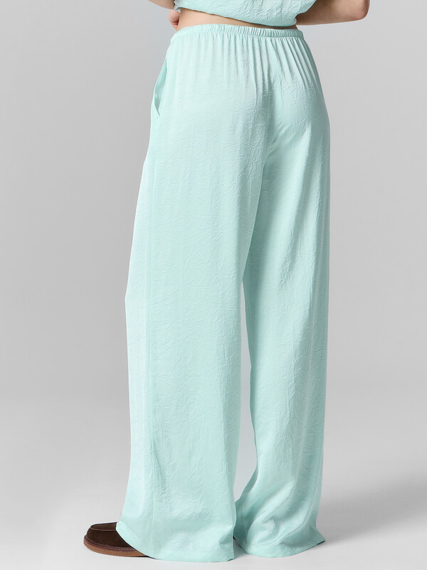 Женские прямые свободные брюки со средней посадкой – отличный выбор для стильного и комфортного образа. Эластичный пояс обеспечивает удобную посадку, а боковые карманы добавляют практичности. Нижние срезы аккуратно обработаны швом вподгибку, что придаёт брюкам завершённый и аккуратный вид. Эта модель выполнена из нежного струящегося материала с добавлением вискозы, которая не только приятно ощущается на коже, но и красиво подчеркивает изящные линии фигуры. Вискоза добавляет брюкам легкость и воздушность, делая их идеальными для теплой погоды.