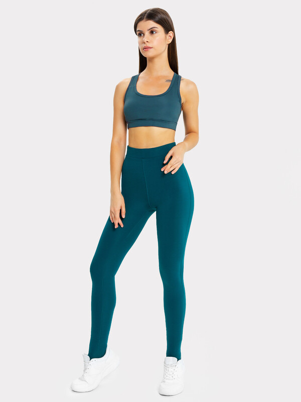 Брюки изготовлены из трикотажного полотна интерлок. Брюки облегающего силуэта, с высокой посадкой, удлененные со штрипками. Пояс отрезной с эластичной тесьмой внутри.