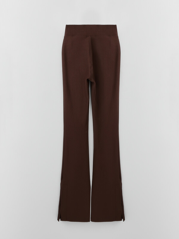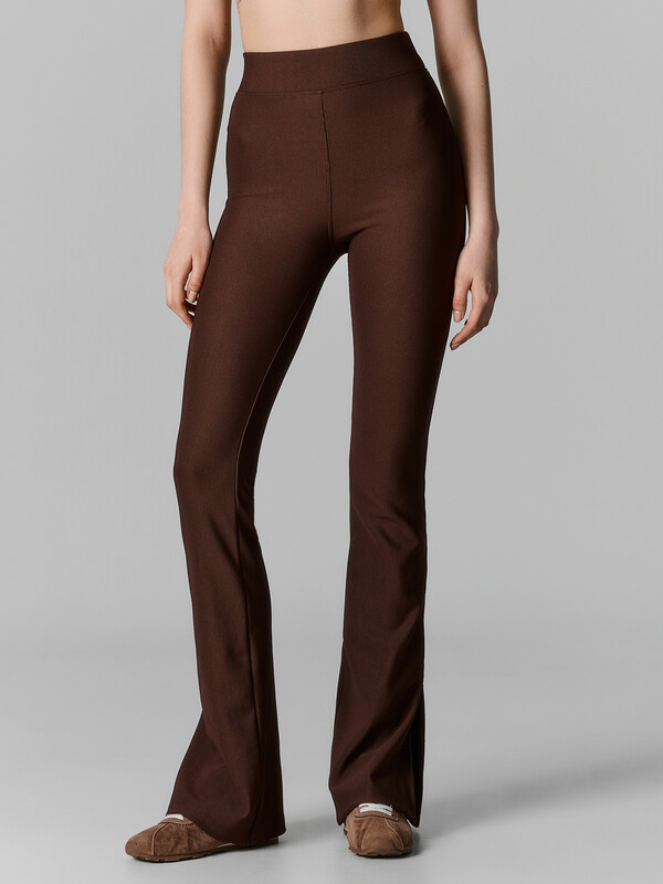 Брюки клеш плотно облегающие бедра до колен, с высокой линией талии.