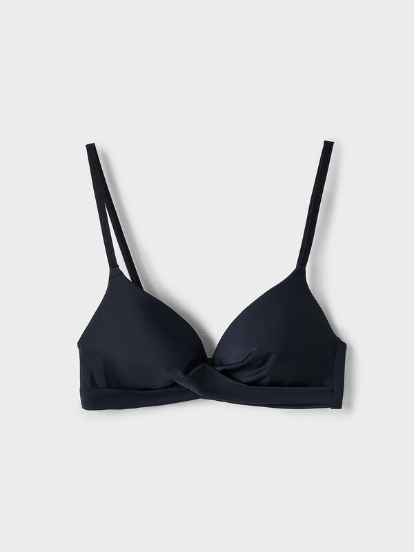 Очаровательный купальный бюстгальтер с формованными чашками без косточек. Верхний и нижний срезы стана обработаны резиной, которая помогает удерживать купальник на груди. Бретели также имеют резину внутри. Специальной полотно делает этот бюстгальтер идеальным для яркого солнца, открытой воды и бассейна – рекомендуем!
