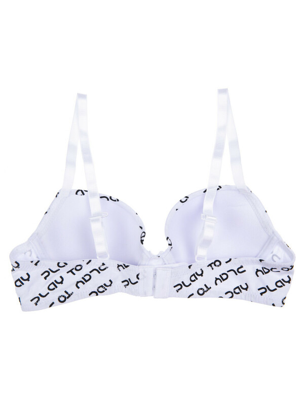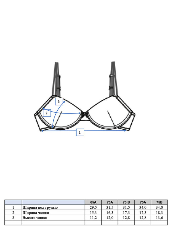 Бюстгальтер с формованными чашками с косточкой. Застежка на 2 крючка, благодаря 3 рядам креплений регулируется по объему. Лямки можно отрегулировать по длине и при необходимости соединить на спине между собой.