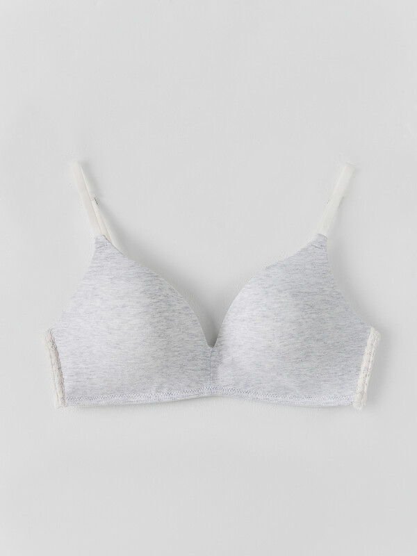 Бюстгальтер t-shirt, с формованными чашками (HN-32), без каркасов. Чашки из кулирного полотна с подформовкой. По линии декольте и по пройме чашки обтачаны полотном. В боковых швах пластины.