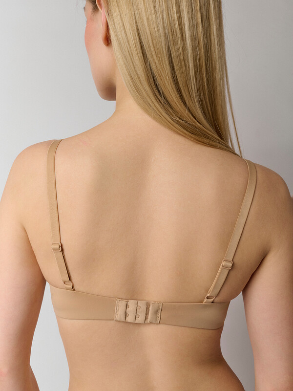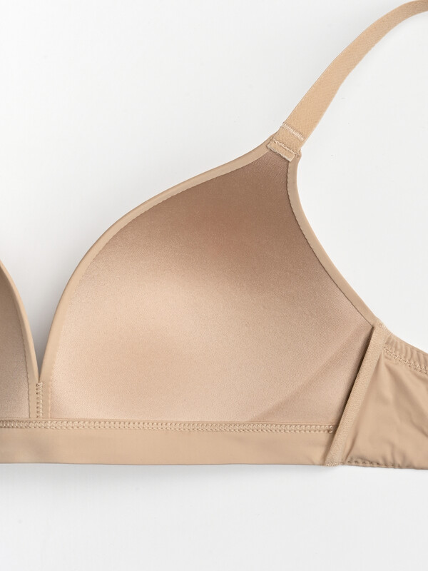 Гладкий бюстгальтер без косточек — универсальная модель, в которой комфортно в течение всего дня. Чашки без каркасов и push up мягко поддерживают и придают округлую, естественную форму груди. Длина пояса регулируется тонкими бретелями. Сшит из эластичной дышащей ткани.