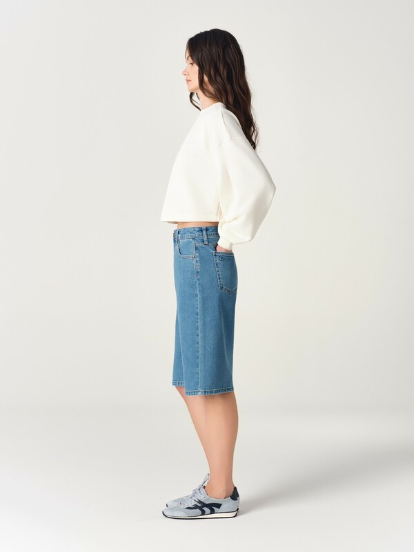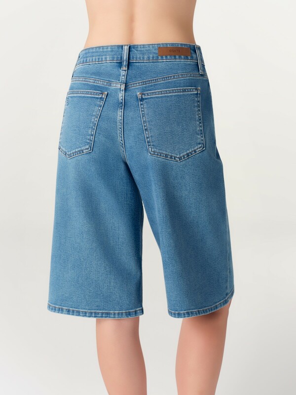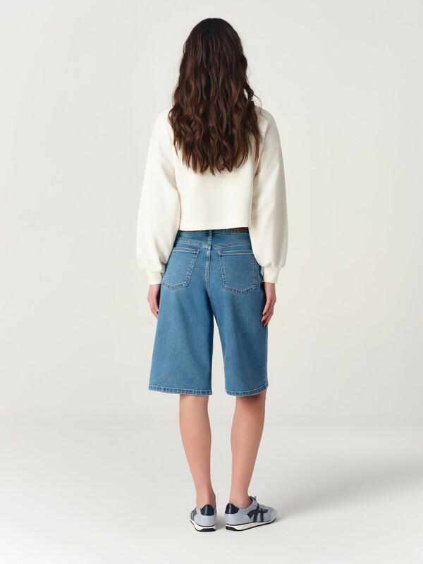 Стильные удлинённые джинсовые шорты – идеальная модель для casual-образов и стилизаций в стиле спорт-шик. Оригинальные детали подчеркнут вашу индивидуальность, а продуманная конструкция обеспечит комфорт на весь день.