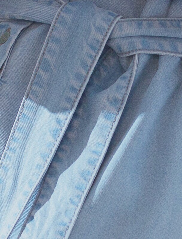 Джинсовое длинное платье-рубашка плотностью 7,8 OZ светло-голубого цвета с поясом и разрезами — универсальное решение для современного гардероба. Модель легко вписывается как в повседневный, так и в деловой стиль. Пояс отлично подчеркивает талию, а цельнокроеный рукав добавляет комфорта. Высокие разрезы по бокам обеспечивают свободу движений, добавляют динамики образу и стиля. Особенность этого платья - состав ткани, сочетающая прочность и мягкость лиоцелла с вискозой, что делает её невероятно комфортной, дышащей,, устойчивой к сминанию и идеально подходящей для чувствительной кожи. Благодаря нежным тактильтным ощущениям, будто шелк, от которого ощущается приятная прохлада, легкое платье подойдет на теплое время года и даже на жаркое лето. Повседневное платье с коротким рукавом подходит на большие размеры и способно подчеркнуть красоту любой фигуры. Продуманный свободный крой платья с отложным воротничком отлично садится на разные типы телосложения, создавая аккуратный и современный образ. Классический силу