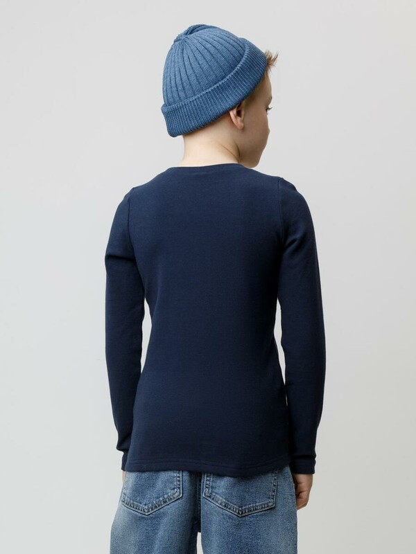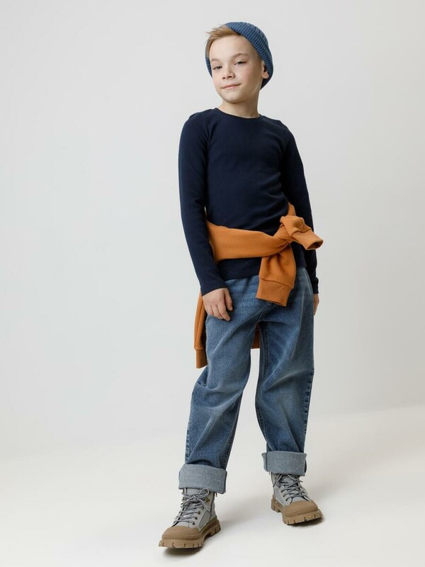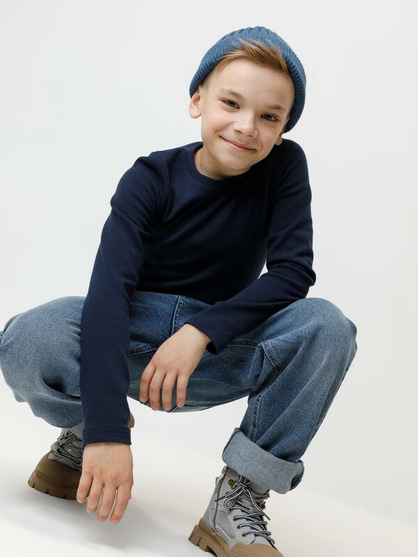 Однотонный джемпер с длинными рукавами. Сшит из высококачественной эластичной рибаны с начёсом. Эластан в составе позволяет изделию быть более эластичным и дольше сохранять опрятный внешний вид. Обтачка горловины выполнена из основного материала.