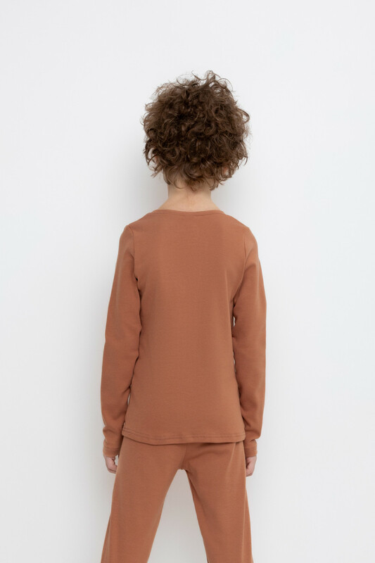 Однотонный джемпер с длинными рукавами. Сшит из высококачественной эластичной рибаны с начёсом. Эластан в составе позволяет изделию быть более эластичным и дольше сохранять опрятный внешний вид. Обтачка горловины выполнена из основного материала.