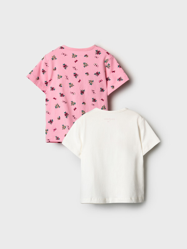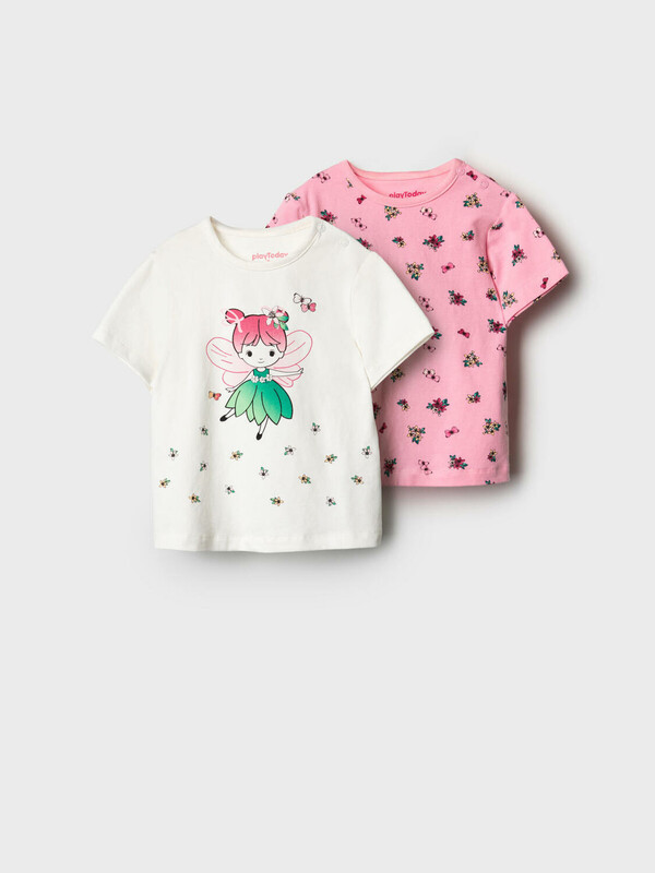 Набор детских футболок для девочки. Комплект из 2 футболок выполнен из хлопкового трикотажа джерси. Застежка на плече на кнопках для удобного переодевания. Нежные принты с цветами и феями.
