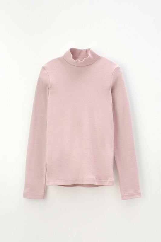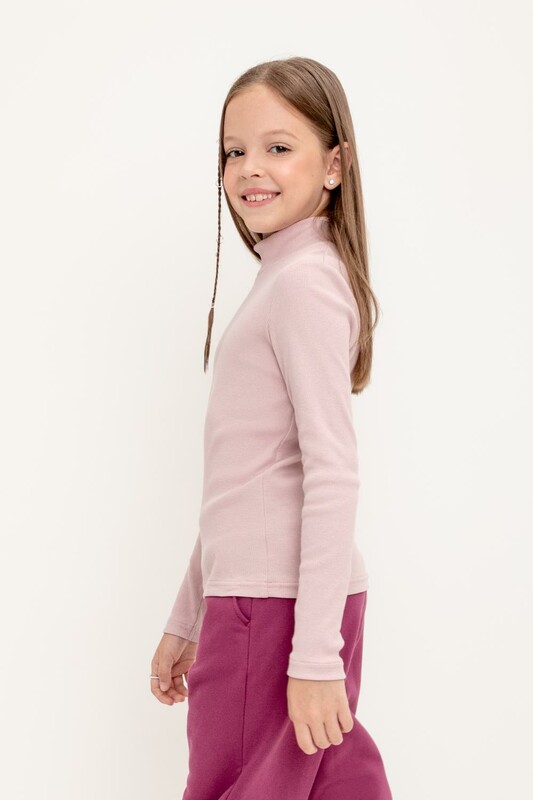 Базовая водолазка для девочки из эластичного кашкорсе, произведенного из натурального хлопка. Изделие имеет воротник с отворотом и длинные втачные рукава. Водолазка сохраняет цвет и форму после многократных стирок.