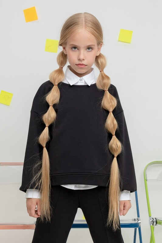 Джемпер школьный для девочки. Произведен из мягкого трикотажного футера трёхнитки. В составе 80% натурального хлопка и 20% полиэстера, при этом полиэстер ввязан внутрь по особой технологии и не соприкасается с кожей.