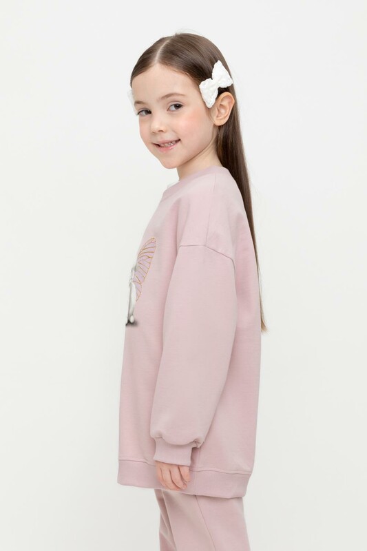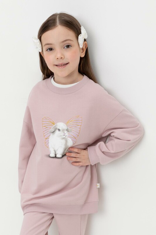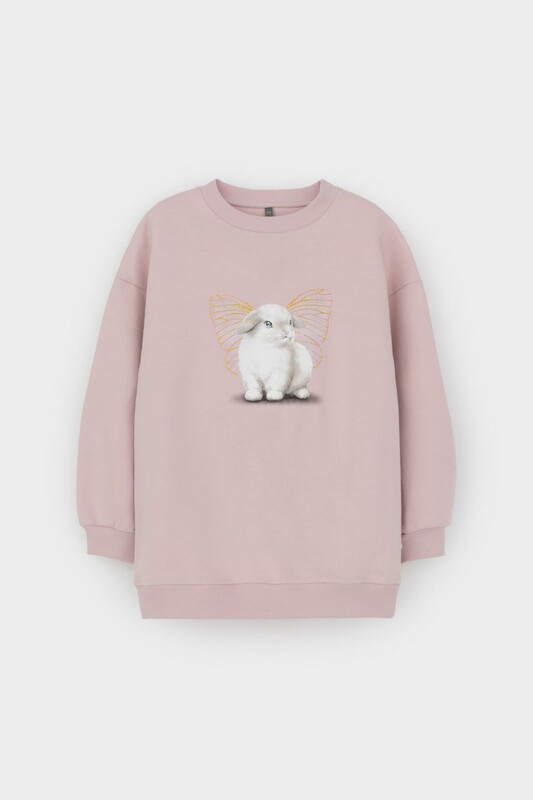 Удлиненный свитшот для девочки из высококачественного футера трехнитки. Обтачка горловины, манжеты и пояс выполнены из эластичного полотна. Оригинальный принт выполнен из стойких текстильных красителей.