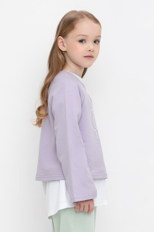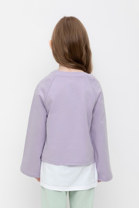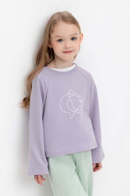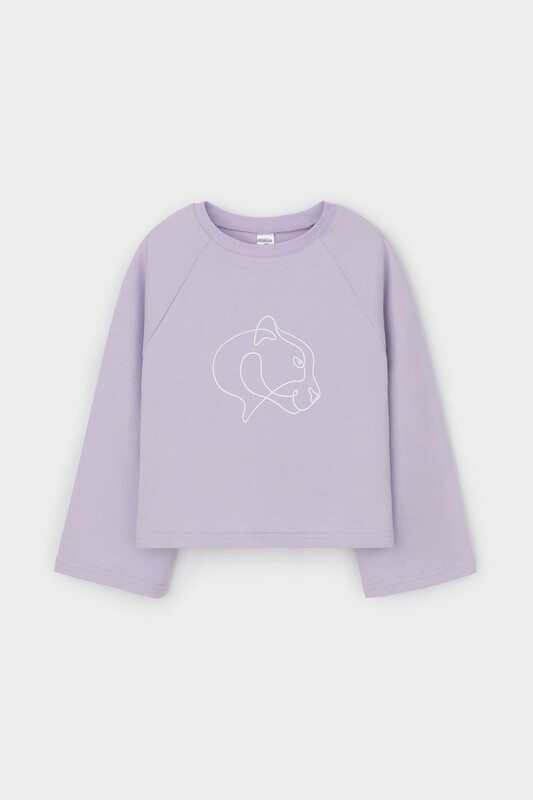 Укороченная толстовка с расклешенными рукавами и принтом для девочки из высококачественного петельчатого футера . Обтачка горловины выполнена из эластичного полотна.Оригинальный принт выполнен из стойких текстильных красителей.